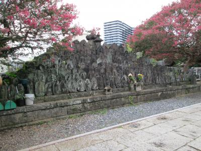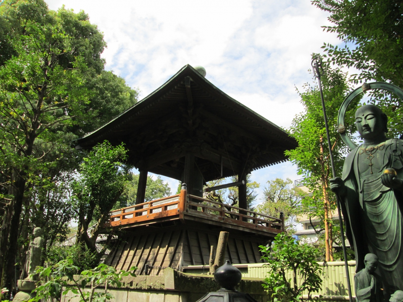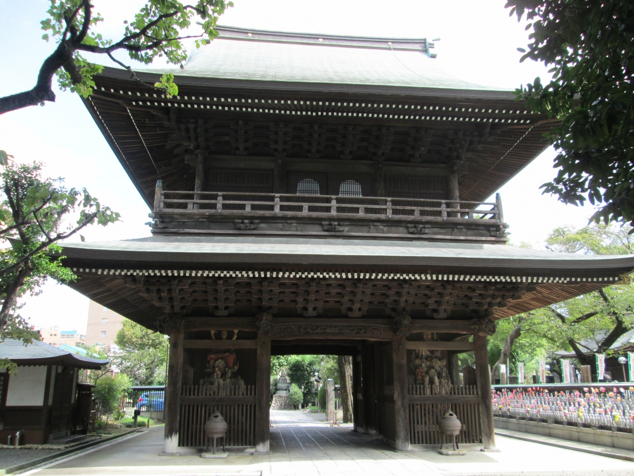 浄土宗の一寺で、開山は晃誉上人、創建は1579年、本尊は阿弥陀如来像です。長い参道の先に山門、正面に本堂があります。その他、地蔵群、石造七重塔、区保存樹木タイサンボク、六地蔵、神郡晩秋の碑、河内山宗俊の碑等があります。境内にはなぜか多くの(百体以上?)石仏が並んでいて壮観です。どの石仏も歴史を感じさせるもので、500年ほど前から置かれている仏もあるのかもしれません。歌舞伎や映画の題材として出てくる河内山宗俊の碑はすぐわかりましたが、墓を見つけることは出来ませんでした