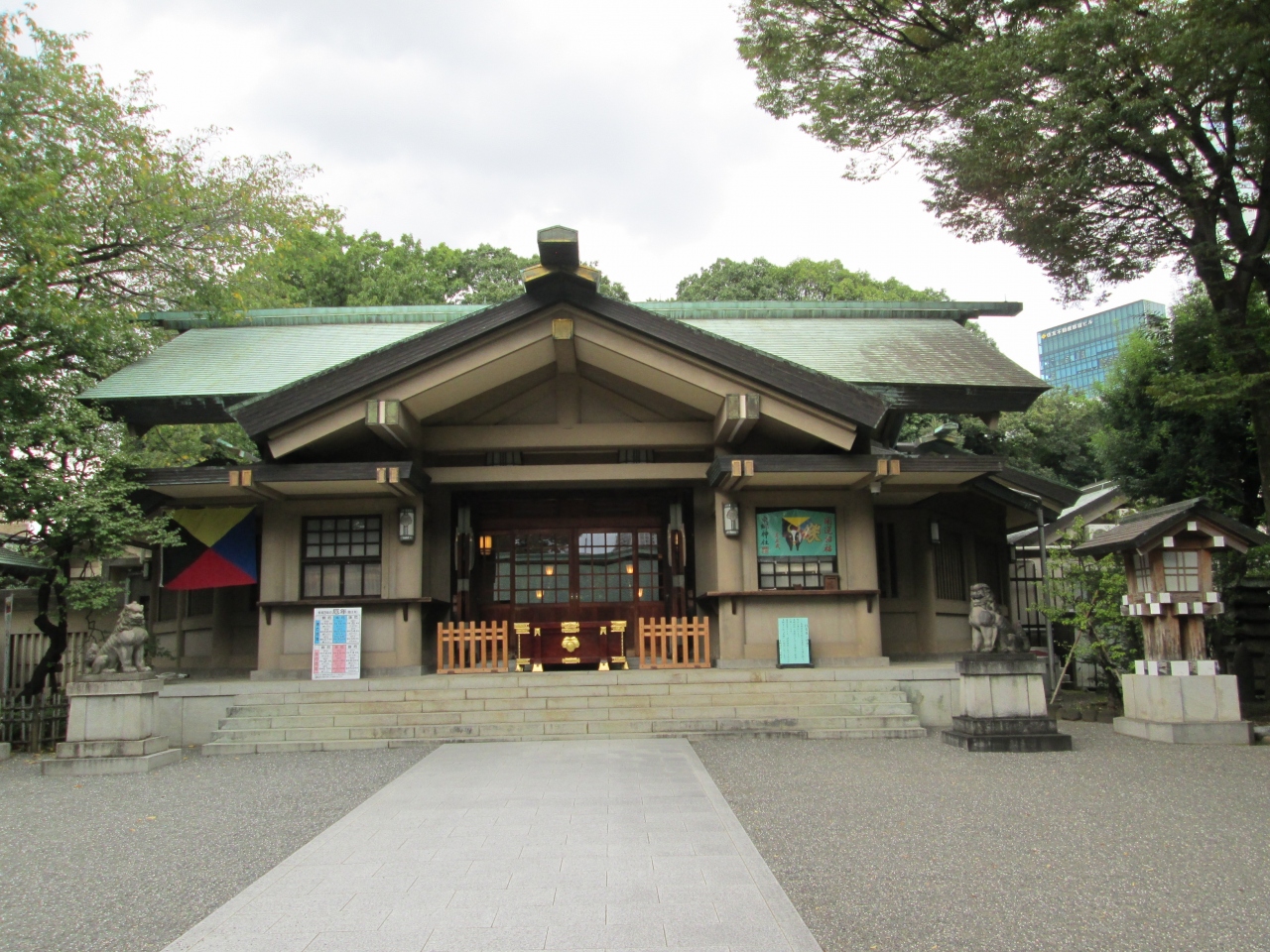 創建1940年、ご祭神 東郷平八郎命(明治時代の元帥海軍大将)です。鳥居を潜り、石段を登る途中右側に庭園(現在工事中、残念ながら入れません)、神門を潜り、正面に拝殿、その奥に本殿があります。左手に境内社海の宮があります。その他、東郷平八郎を讃える歌碑、魚雷模型、石造五重塔等があります。東郷平八郎の生涯の説明の中に軍艦三笠(現在は記念艦として横須賀市の三笠公園に保存されている)が出てきていましたが、この三笠の鐘が吊り下げられていた梵鐘が母校の校庭にあったのを思い出しました。入校したのは戦後ですので、戦争中の金属類供出で鐘はありませんでした。喧騒な渋谷の中にあるにもかかわらず、意外と静かで驚きました