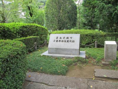 皇太子殿下御仮寓所跡碑は江戸東京たてもの園の中にあります。戦災で東宮仮御所や学習院中等科校舎が焼失し、昭和21年学習院中等科の校舎がこの場所西側に建てられ、そのためここに東宮仮寓所が造られ、皇太子殿下(現上皇)はそこに3年間住まわれた。碑はつつじの木で囲まれているため、あることに気が付きませんでしたが、ビジターセンターから屋外に出たとき左手に午砲が目に入り、近づいたときに碑に気が付きました。上皇陛下がここに仮住まいしていたことを初めて知りました