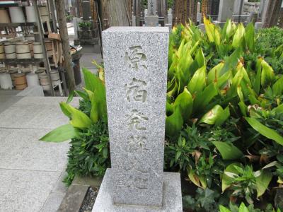 日蓮宗の一寺で、開山は円成院日光和尚、創建は1627年です。山門を入ると正面に本堂と毘沙門天堂があります。その他、穏原小学校旧跡の説明板、原宿発祥の地碑、地蔵群、供養塔等があります。境内には原宿発祥の地碑があります。鎌倉街道の宿場町・原宿がこの妙園寺あたりにあったとされる。この辺り、古くは隠田村、原宿村であったが、昭和40年の住居表示変更の際、両者折り合わず、神宮前という町名になった。原宿の人は原宿の名を惜しみ、碑を妙園寺に建てた。妙園寺と名前の発祥とは直接関係はありません。昔の人は生活のための争いでしたが、今は意地の張り合い、豊なのですね