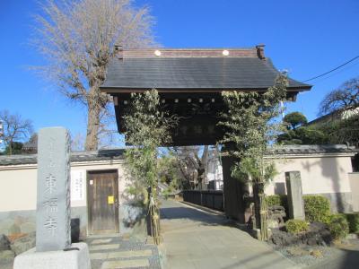 曹洞宗の一寺、創建は不詳、十七世紀、開山は洞巌和尚、本尊は釈迦牟尼仏です。武蔵野四軒寺の一寺です。通用門を通ると、本堂、幹漆造白衣観音坐像が安置されている観音堂、三蔵法師像、閉じられている中国風の山門があります。駅に近い一等地に広い境内を持つ寺です。本堂向拝下の彫刻が見事です。三蔵法師(中国の僧)と中国風山門、この寺とどういう関係なのか分かりませんでした