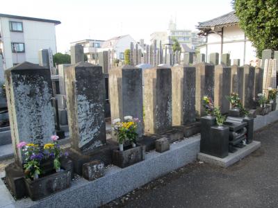 曹洞宗の一寺、創建1597年、開基は徳川家康、開山は諦巌桂察和尚、本尊は釈迦如来像です。門扉に葵のご紋が彫られています。山門を潜ると、六地蔵、本堂、板碑、地蔵堂があります。薩摩藩島津氏の菩提寺であったが、明治時代に神道に改宗され、佐土原島津氏以外は鹿児島に改葬された。門扉に刻まれている葵のご紋、立派な四脚門の山門に目を奪われます。墓地には、旗本松平家、西郷吉之助(隆盛)の息子、飯野藩保科家「徳川家光の腹違いの弟の保科正之(将軍家光や家綱を補佐する重要な藩主。高遠藩主を経て、初代会津藩主)の養子先の父保科正光の弟正貞が飯野藩保科家の藩祖です」、森有礼(初代文部大臣)の兄横山安武、西郷吉之助と愛加那との娘大山菊子、佐土原藩主島津氏等多くの歴史上有名人の墓が多くあり、それらを探して歩くのも楽しいものです