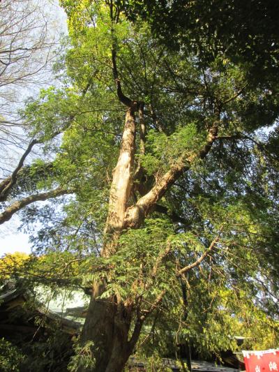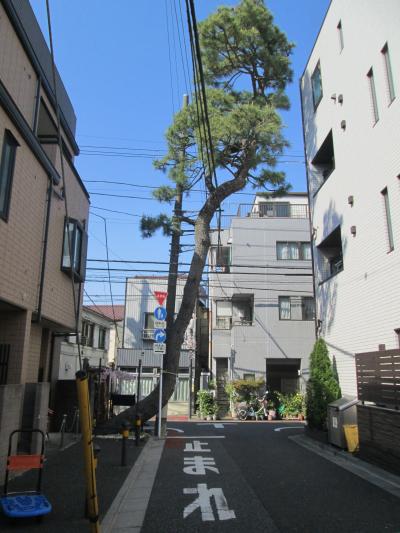 大宮八幡宮の旧参道の十字路の一角に立っています。十一世紀末、武将源義家(鎌倉幕府を開いた頼朝の四代前の清和源氏の当主です)が前九年の役と後三年の役で奥州遠征の折、この松に馬の鞍をかけたという伝承に由来します。この話は江戸名所図会にも紹介されています。松は代替わりをしています。写真撮影に苦労するほど背が高いのにはびっくりしました。代替わりしているのですが、どなたが管理して維持されていくのか謎です。その他大宮八幡宮には、男・女銀杏、源義家お手植えの松、菩提樹、共生の木等謂れのある大樹木があるので、併せて見ることをお勧めします