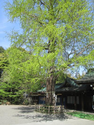 創建は1063年、御祭神は応神天皇、神功皇后、仲哀天皇です。第一鳥居を潜ると社叢があります。第二鳥居を潜ると多摩清水社があります。神門を潜ると正面に拝殿、その奥に本殿があります。その他、神楽殿、境内社大宮天満宮、榛名・御岳神社、若宮八幡神社、白幡宮、大宮稲荷神社、三宝荒神社があります。都天然記念物に指定されている社叢(主にケヤキ、クスノキ、カシ)の中にあるため大変静かな神社です。カシの木に桜が寄生している共生の木、ご神木の男銀杏と女銀杏、松平(結城)秀康(徳川秀忠の兄)の側室が植えた菩提樹、源義家お手植えの松、源義家の鞍掛の松等謂れのある木が多くあり、興味深く拝見しました