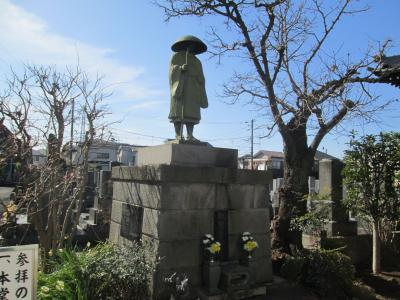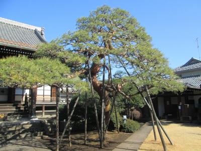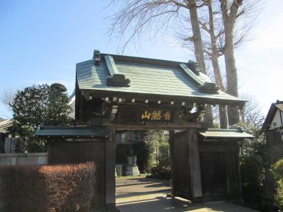 日蓮宗の一寺、創建は1614年、開基は覚隆院日諦上人、開山は忠禅院日延上人、本尊は日蓮大菩薩です。烏山寺町を構成する26ケ寺の一寺です。創建地は白金ですが、関東大震災後、1926年現在地に移転する。山門を通ると正面に本堂があります。山門に二匹の狛犬が迎えてくれます。狛犬は神社では多く見られますが、寺院ではあまり見られません。神仏分離の際に残ったものでしょうか?鎌倉の報国寺には若干劣りますが見事な竹林が見られます。梅の木数本が開花していて、花を添えてくれています