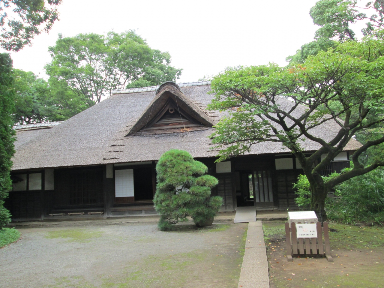 天明家(農家)は江戸東京たてもの園の中にあります。鵜の木村(現在の大田区)の村役人年寄り方を務めた豪農の旧家です。千鳥破風を持つ母屋屋根、長屋門、枯山水の庭、書院を持つ広い母屋等、格式高い農家です。かなり裕福な農家だったことが伺えます。寺社建築や城郭建築に見られる火灯窓を配した壁、千鳥破風付き茅葺屋根、座敷を持つ長屋門、枯山水の庭等今まで見た農家での中では上位に位置する立派な農家です