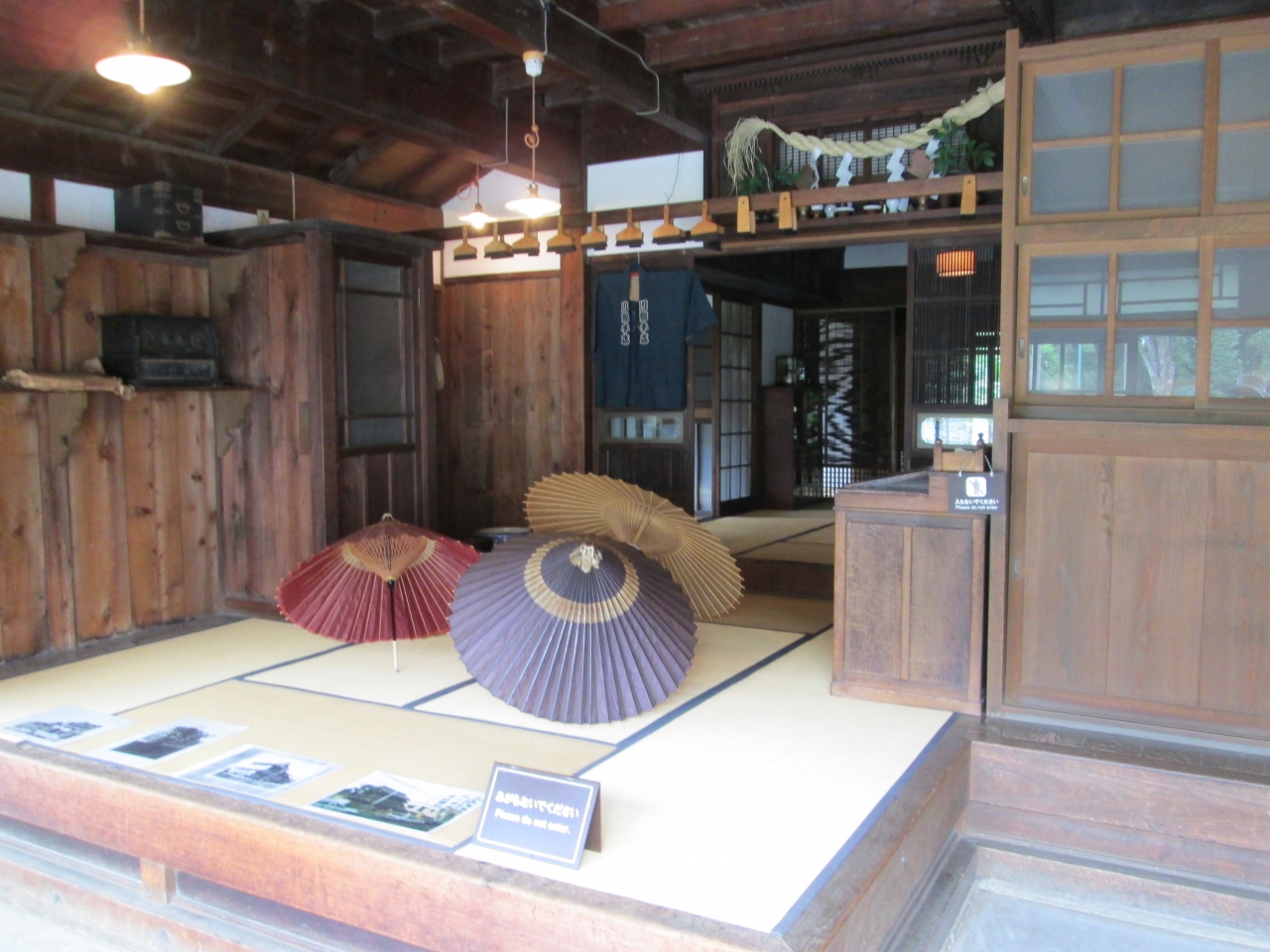 川野商店は江戸東京たてもの園の中にあります。大正5年江戸川区南小岩に建てられた店舗兼住宅の建物です。傘の生産や完成した傘を仕入れ卸をする問屋をしていました。看板建築と違い純和風の地方都市でよく見られた格子戸付きの店舗です。展示されている和傘を見て、風情があるなと感心しました。私が子供の時はすでにこうもり傘を使用していましたが、時々番傘というオード色の和傘を使用している人を見かけたことを思い出し、懐かしく思いました