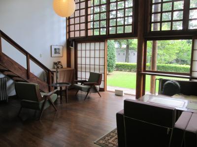 前川国男邸は江戸東京たてもの園の中にあります。公共建築を主にした建築作品を残し、日本の近代建築の発展に貢献した建築家前川国男の1942年に建てられた自邸です。外観は切妻屋根の純和風ですが、内部は吹き抜けの居間を中心にフローリング主体の洋風です。ガラスが多く使用され、採光は素晴らしいし、冬は暖かいと思われますが、夏は日差しを遮るものが無く、ちょっと暑いのではないかと思いました
