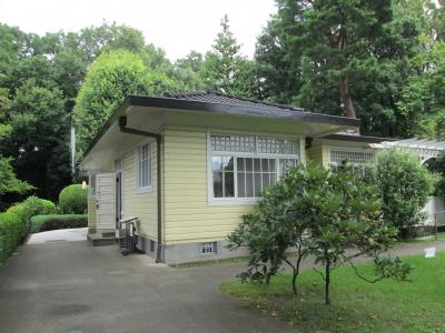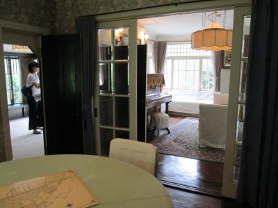 田園調布の家(大川邸)は江戸東京たてもの園の中にあります。田園都市株式会社が開発した、大田区田園調布に1925年に建てられた住宅です。居間を中心に寝室、食堂、書斎が配された居間中心型と呼ばれる間取りが特徴です。内部は全てフローリング、外観も洋風な造り、雨戸も無い、ガラスが多く使用された採光の良い部屋、大正末の建物ですが、随分モダンな家が建てられたものです 。現在の田園調布は高級住宅街のイメージですが、当時からこのようなモダンな家が多く建っていたのか興味ある所です