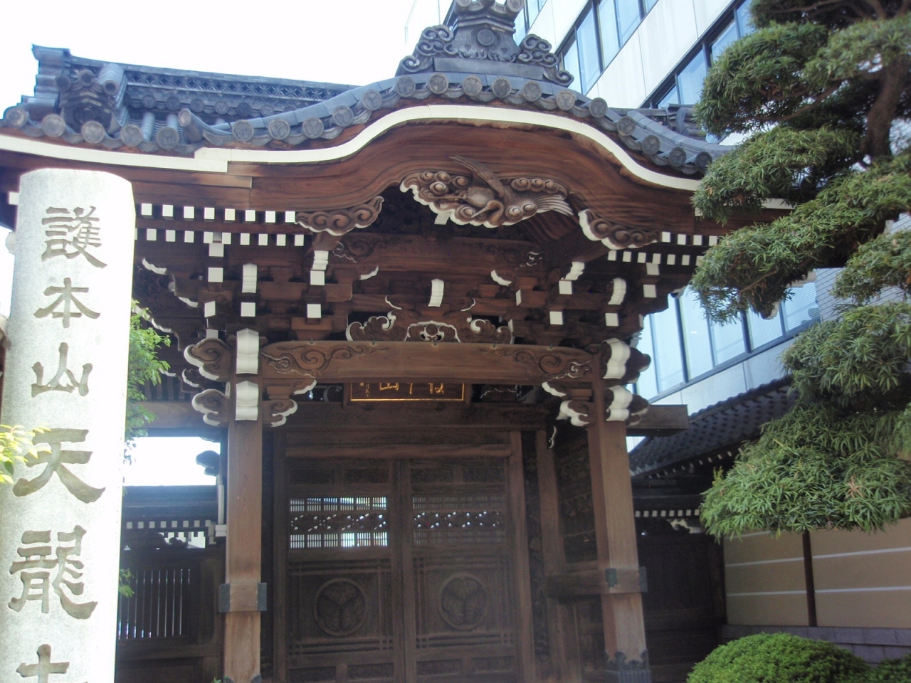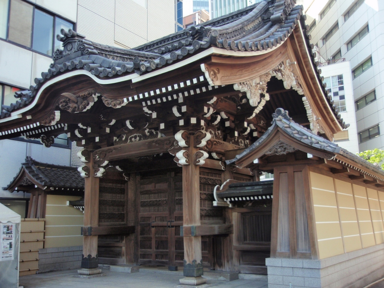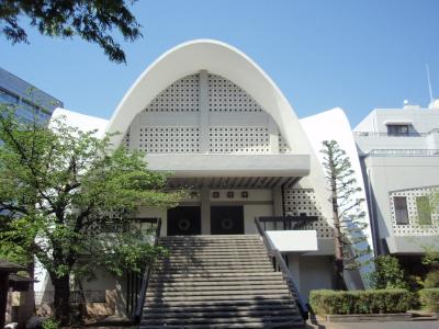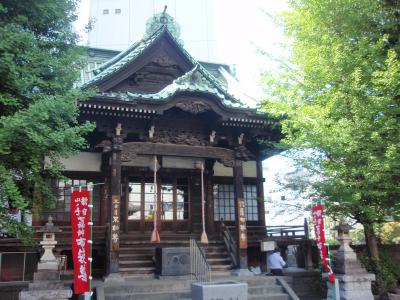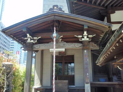本門法華宗の一寺です。新宿中央公園横の1本道を挟んだビルの間にある寺院で、鐘楼が無いとお寺であることがわかりません。モダンな鐘楼とビルの本堂があります。ビルの間にある寺で、かつ鐘楼も本堂もモダンな洋風建物で統一されているので、周囲とのバランスは保たれていて、違和感はありません。ただし、和風建築の軒下の彫刻、屋根の破風、門の種類等じっくり見るものがありませんので、見学はすぐ終了してしまいます