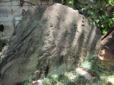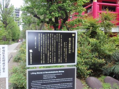創建は903年、菅原道真公が亡くなられたとき、家臣の佐伯と斎宮は公が彫られた像をここ柏木村に祀ったのが始まりとされる成子天神社の境内で力石を見ました。お祭りのときに持ち上げるのを競い合った石七個があります。一番重いものは218Kgあるそうです。見た目では、力持ちの人なら持ち上がりそうな感じですが、石が地面に埋まっていて大きさがわかりません。現在重量挙げ競技で重量クラスの世界記録はクリーン&ジャークで263Kgですから、218Kgの持ちにくい丸石を持ち上げた人は、現在に生きていたら世界チャンピオンになれたかもしれません