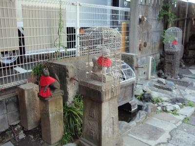 創建は不詳、昭和3年花園神社に合祀され、花園神社の境外社になっていて鳥居や社殿が残っています。二本の鳥居、拝殿、その奥に本殿?左に境内社と六体の狐像のこじんまりした神社です。拝殿の後ろに本殿みたいなものがありましたが、コンクリート製のもので、何故拝殿と同じ木製ではないのか不思議です。後から建てられたのでしょうか?昭和30年代、直ぐ傍にある都立S高校に通っていましたが、ここに神社があるとは全く気が付きませんでした