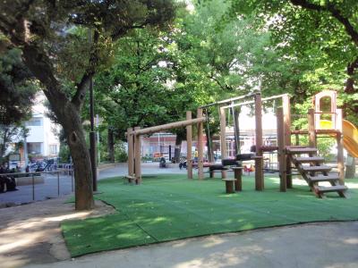 花園公園や花園小学校一帯は幕末から明治にかけて活躍した落語家初代三遊亭園朝の旧居(敷地千平方メートル)跡です。ブランコ、複合遊具、砂場、スプリング遊具、滑り台等がある区の公園です。グランドは小学校開校日には小学校の校庭になっているので使用不可、土日祝はお問い合わせの上一般に使用できるようです。お互いに狭い土地を有効利用出来てグッドアイデアです。近所に住むヤングママが小さな子供を遊ばせていました。園朝は回遊式庭園を備えた広い敷地に住んでいたので驚きました。初代死後、園朝という名跡を継ぐ落語家はなぜいなかったのでしょうか(二代目は襲名披露前に死亡)