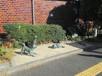 中野区役所の一角にあります。江戸幕府第五代将軍徳川綱吉により出された「生類憐みの令」により、犬を収容する施設が設けられ、ここ中野にも「御囲い」「犬囲い」と呼ばれる犬屋敷が設置される。悪法とも謂れた「生類憐みの令」により、野犬が増え、保護施設を作らざる得なくなり、最盛期には3か所10万匹の犬が保護されていたそうです。食べるのにも苦労する人が多くいる中で、この法を作らせた徳川綱吉は罪深いですね。現在、跡地に犬の像数匹が置かれていますが、立ち寄る人は一人もいませんでした