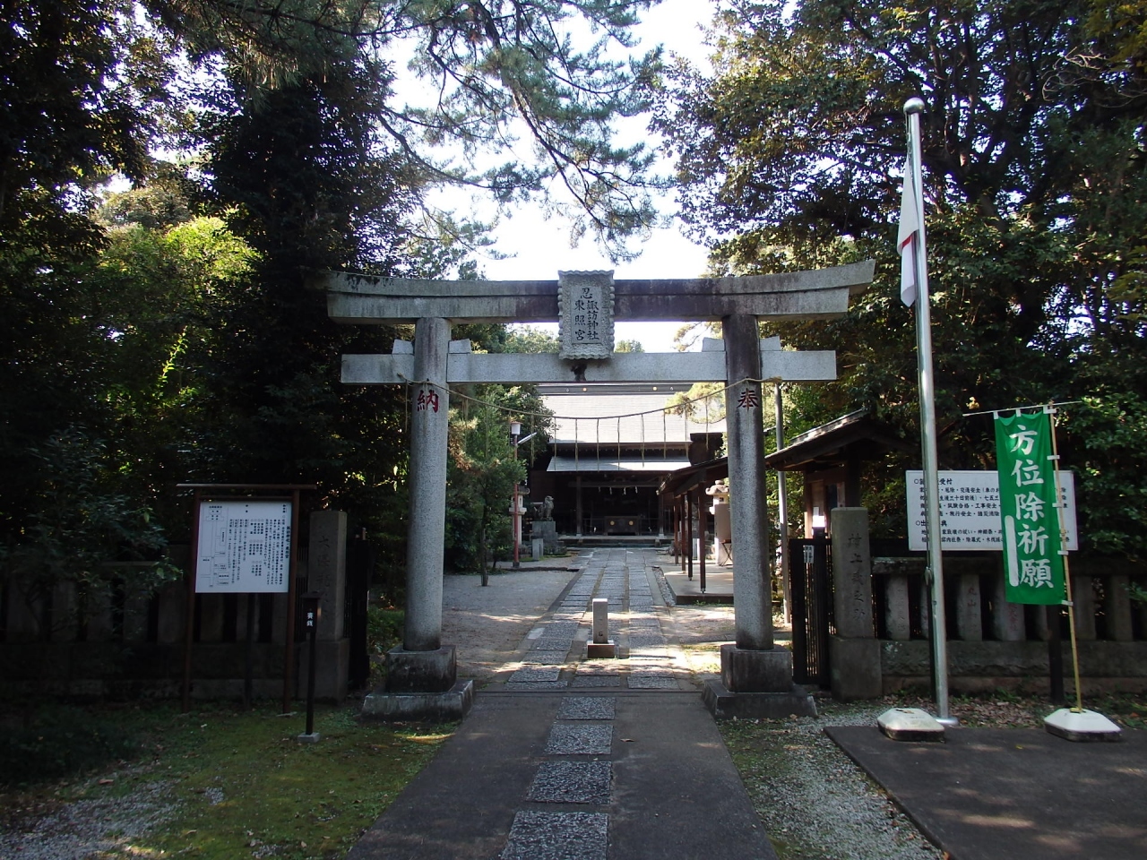 創建は1625年、松平忠明が社を造営し、母亀姫(家康娘)が所持していた祖父の肖像を安置したのが始まりとされます。東照宮は松平家移封のたびに遷座され、明治6年忍城廃城の際に、諏訪神社境内に遷座されました。拝殿向拝や奉納額にはすばらしい彫刻が施されています。道を隔てて隣にある人の多い忍城と違い、ご神木である大樹が茂り、また一人も参拝者と合わない静かな神社でした