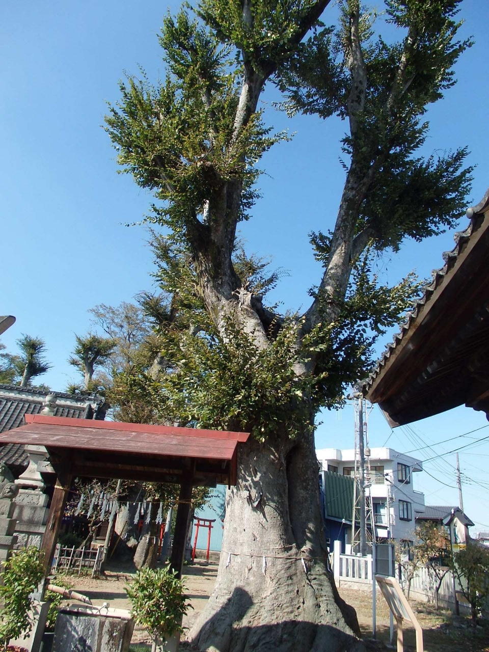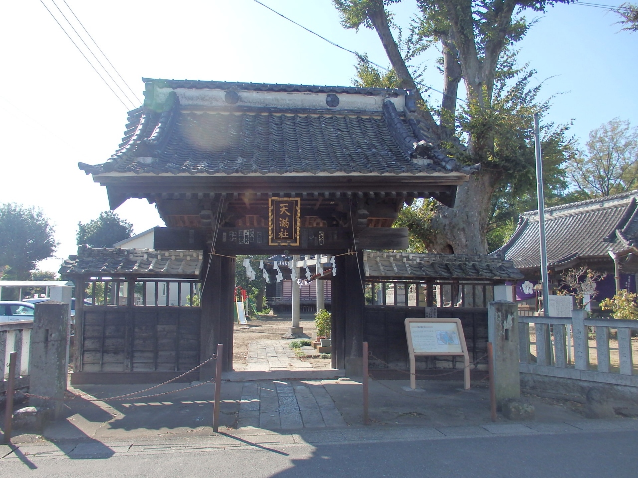 創建は1491年、ご祭神は菅原道真公です。神門、鳥居、拝殿、幣殿、本殿(覆殿か)神楽殿、境内社の稲荷社等が配されています。この佐間口辺りは石田三成との戦いで、忍城家老正木丹波守が奮戦したところと言われています。境内には樹齢400年以上、高いものは樹高30M以上、樹廻り5M以上の大ケヤキが見られます。直ぐ脇に水城公園がありまた他の参拝者もおらず静かに参拝できる神社です