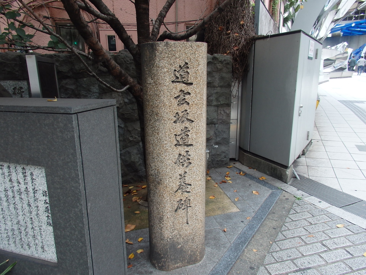 道玄坂道供養碑は道玄坂上交番前の三角地にあります。道玄坂道供養碑と道玄坂名の由緒と与謝野晶子歌碑が建っています。供養碑については説明版が無いので何(または誰)を供養しているのか分かりませんでした。昔、大和田道玄がこの地で野蛮な振る舞いをされた被害者を供養するためのものか、旧陸軍の用地や刑務所あったので、戦死者を弔うために建てた供養碑なのかと勝手に推測します