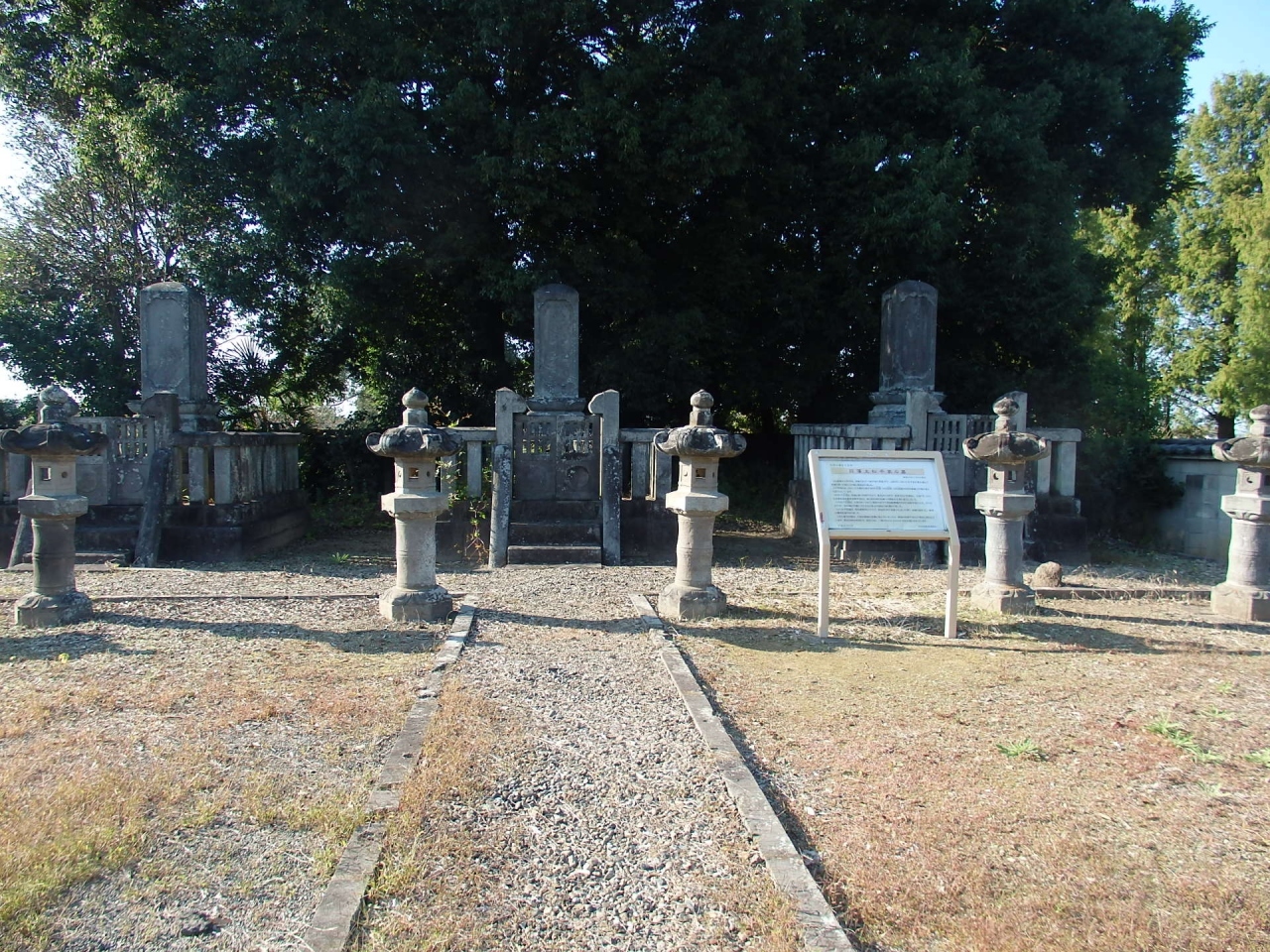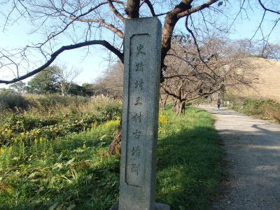 豊臣秀吉の関東平定の時、石田三成が後北条方の忍城を攻略する際、水攻めのために忍城周囲28Kmに渡って築いた堤を言います。丸墓山古墳の南側から丸墓山古墳の木段に近づく道が石田堤の一部です。埼玉県指定史跡に指定されています。堤高さは2~3Mあったと言われている割には堤の道と周囲の高低差が少ない。堤の道が削られたのか、周囲が埋まってしまったのか、堤であったということがわからない状況になっていました