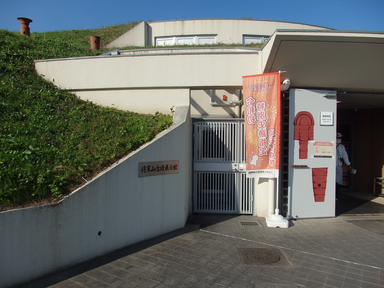 将軍山古墳の石室が将軍山古墳展示館となっており、石室内部、展示館の歩み、馬具早着想定図、古墳断面、石室内の埋葬想定写真等が見られます。実物は史跡の博物館本館で見られます。石室に使用されていた房州石のサンプル、露出していた古墳断面をはぎとったもの、石室内の再現模型等興味深いものが展示されていて勉強になりました