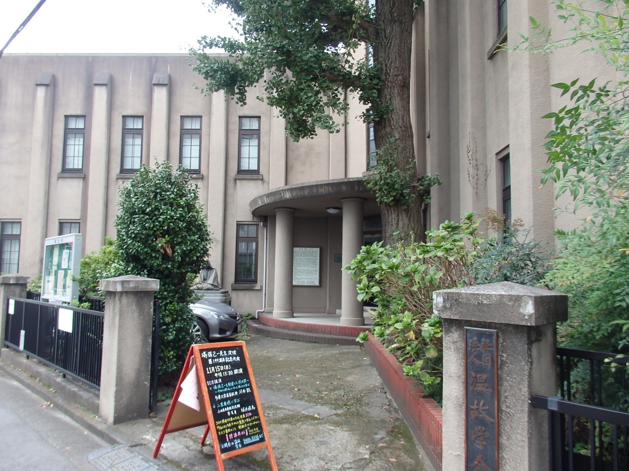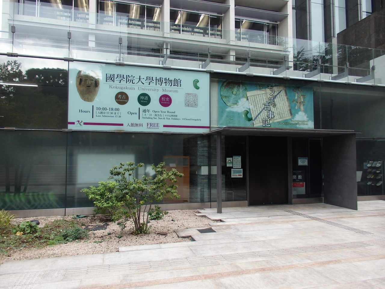 国学院大学キャンパスの中にあり、考古資料、神道資料、学校史(国学院大学と縁が深い有栖川宮家の肖像、印籠、勲章等)が常設展示、ほかに特別展・企画展が実施されています。見学するために寄りましたが、残念ながら火曜日は休館日でした。通常展示館の休館日は月曜日が多いのですが、ここは火曜日でした。近いのでまた訪れたいと思います。博物館前に古墳時代の石棺が置かれていました。鹿島川中流域にある大篠塚古墳2号古墳は古墳時代後期の前方後円墳で、ここから出土した石棺です。石棺に使われている石は秩父で掘れる緑泥片岩という石で、時々見かける板碑に使用されている石です。緑泥片岩は古墳時代から使われていたとは驚きました