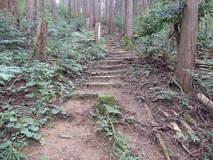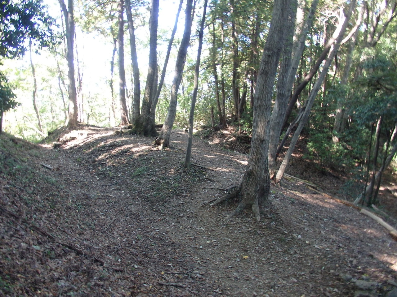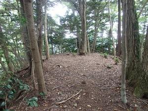 十里木バス停より割と急な登りが続く木段や木の根道を登り、登り始めてから40分戸倉城山山頂(434.1M)に到着しました。東側が開けていて市街がみられます。山頂には戸倉城説明版と三角点があります。帰りは登ってきた道を 戻りました。山城遺構は山頂の本郭跡、山頂手前の二郭跡、二郭と出丸跡に見られる堀切、その手前にある出丸跡が見られました。 本日のコース標高差200m弱、歩行時間1時間半と楽な年より向きのコースでした