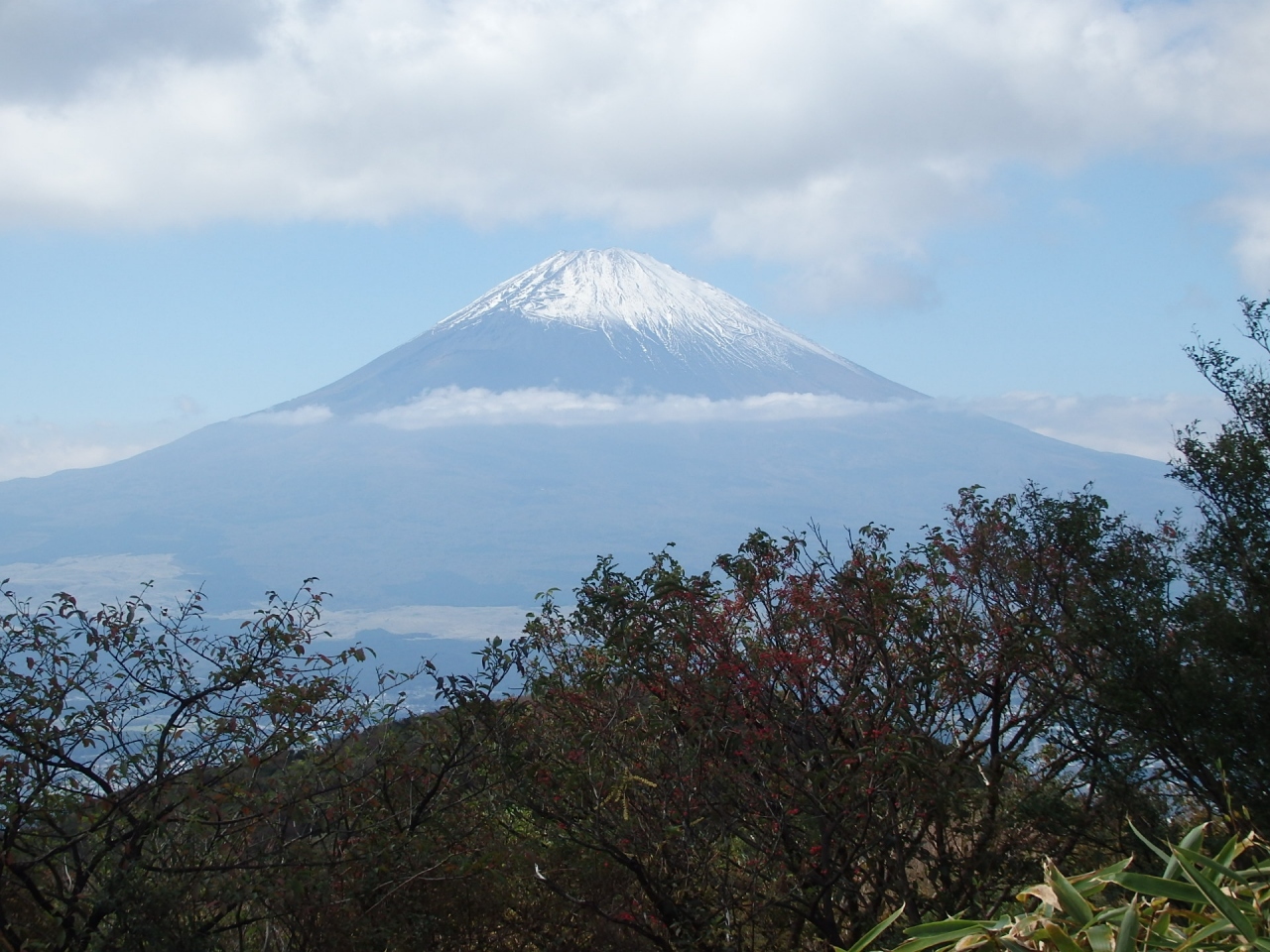 乙女登山口から割と急登りの登山道を経て、1時間弱乙女峠に到着しました。昔娘が父親治癒のため、峠の地蔵堂に日参し、願いはかなえられたのですが、娘は雪に埋もれて亡くなったので乙女峠と名付けられたそうです。展望台からは富士山が見える絶好のビューポイントなのですが、現時点では雲がかかり、ほんの一部を除いて富士山は見えません(この後丸岳では素晴らしい富士山を見ることが出来ました)。ベンチがあり食事もできます。雲が切れることを願い少しベンチで休んでいたのですが、中々雲が動かず、あきらめて丸岳に向かいました。トリカブト、サラシナショウマ、ゴマナ等数種の野花を見られ満足できました