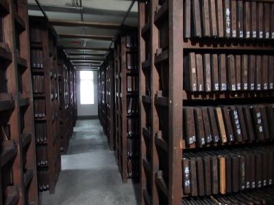 版木が反らないように版木ごとに枠木で押さえて保管されています。物凄い手をかけて保管しているのと17224枚の数量の多さに感心させられました