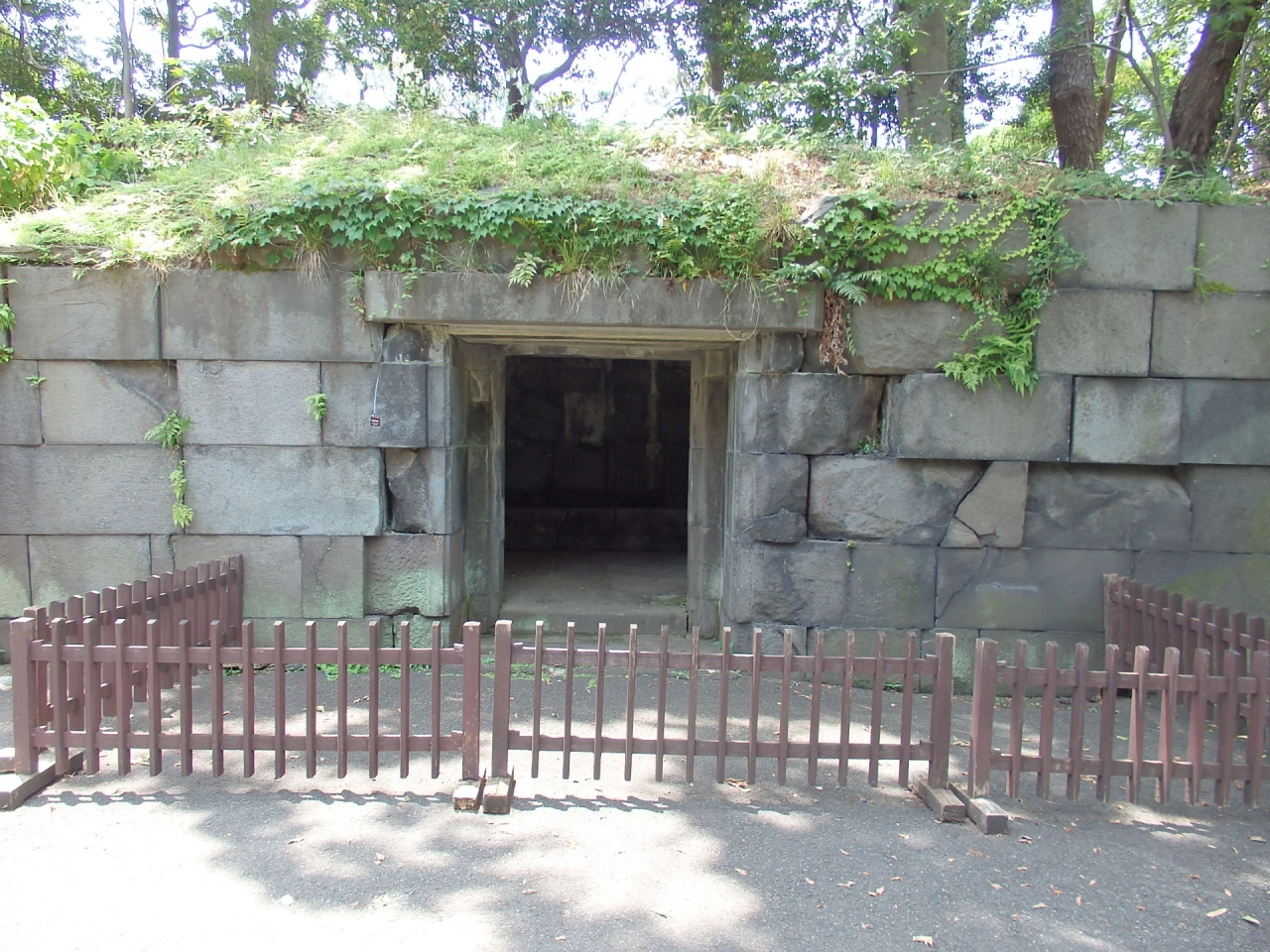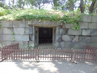 本丸跡の蓮池堀沿いにある石を積み立てた室です。耐火性の必需品を収めた蔵または必需品の避難場所だったようです。厚みのある石を隙間なくキッチリと積まれています。江戸では火災が多くかなり耐火性に気を使ったのが感じられます。何千の人が生活している区域の避難場所にしては、大きくないような気がします。何を避難したのか興味が湧きます