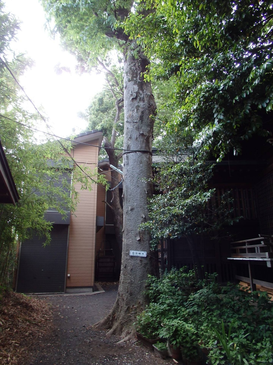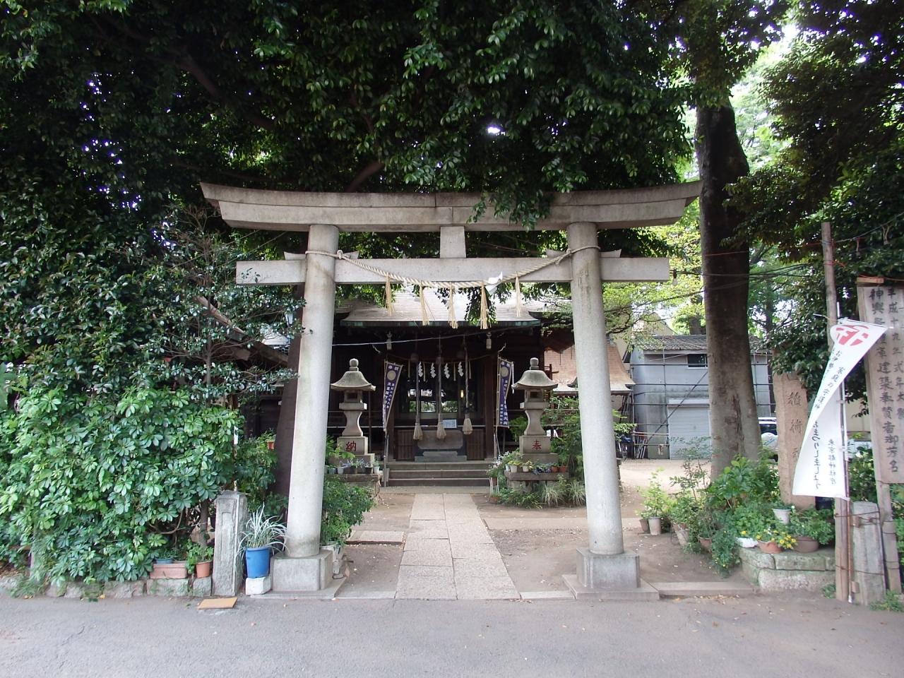 が、分かりにくい場所にあります。鳥居をくぐると、正面に拝殿、その奥に本殿、本殿の右手に大鳥社があり、こじんまりした神社です。境内には世田谷保存樹木を初め多くの木があるので、昼でも暗い感じがします。樹木で囲まれているせいか、線路脇にある神社にもかかわらず、静寂さを感じる神社でした