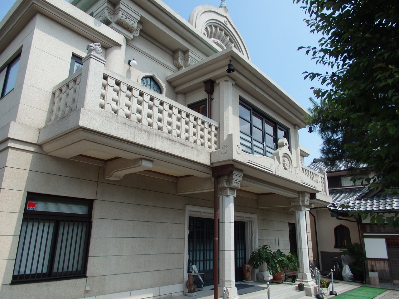 寺社建築の火灯窓が配されていて、工夫されているなと感じました。境内右手には立派な