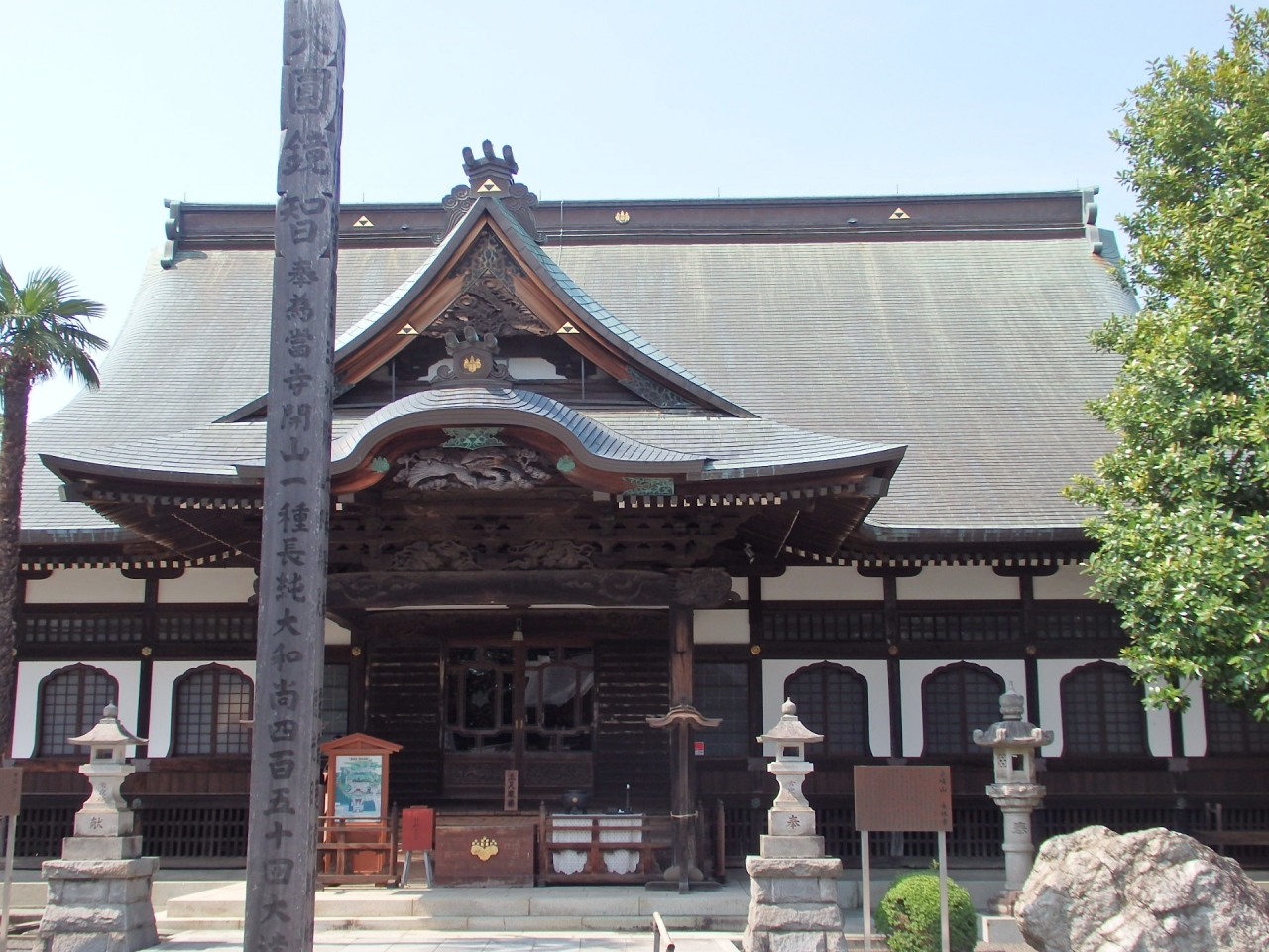本堂は昭和の末に再建された鉄筋コンクリート造りものです。参道を進み、山門(割と立