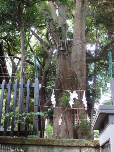 平安時代末、源頼義、義家親子が前九年の役で奥州征伐に向かう途中、この神社で戦勝祈願したと伝えられています。弁天社、鳥居、境内社出羽三山神社、拝殿、本殿、稲荷大明神、縁結びと夫婦和合にご利益がある相生の榊が配されています。本殿の右奥に樹齢500年、幹回り4Mのご神木大楠の木があります。大樹が多くある中で、他より一回り大きいので、圧倒されます。樹木が多く、住宅街のそば在って喧騒さを感じさせない落ち着いた感じの神社です