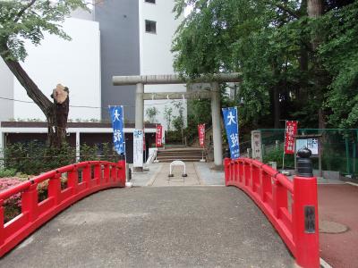 平安時代末、源頼義、義家親子が前九年の役で奥州征伐に向かう途中、この神社で戦勝祈願したと伝えられています。境内には拝殿、本殿、神楽殿、招魂社(旧拝殿)、複数の境内社が配されています。拝殿はコンクリート製ですが、向拝部には見事な彫刻が施されています。川が無いのになぜ神橋が?川が暗渠になってしまった結果です。樹木が多く、住宅街のそば在って喧騒さを感じさせない落ち着いた感じの神社です