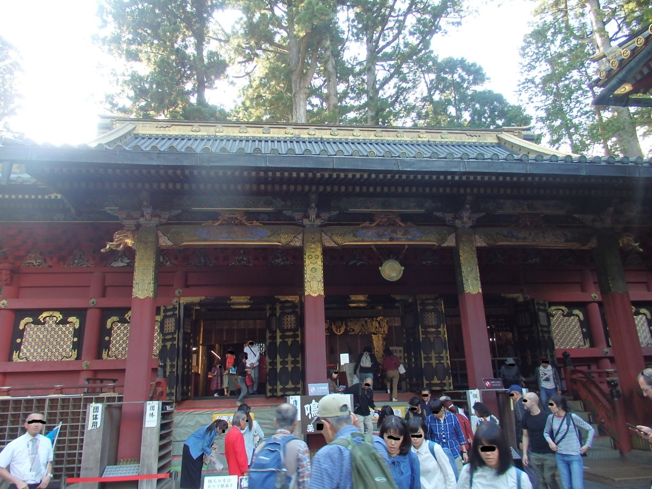 薬師堂(本地堂)は家康の本地仏が祀られていて、国重要文化財です。東照宮という神社の境内にありますが、輪王寺の管轄です。総漆塗極彩色の華麗な外観が見事です。薬師堂の天井には龍(鳴き龍)の絵が描かれており、龍の頭の下で手をたたくと天井と床で共鳴して「ビーン」と余韻が聞ける。京都のお寺で試したことがありますが、参拝者が一斉に叩くので良くわからなかったのですが、ここでは説明者一人が拍子木を鳴らして聞かせるので、よくわかりました。参拝者少ないときは、各個人が手をたたいて聞かせてほしいものです