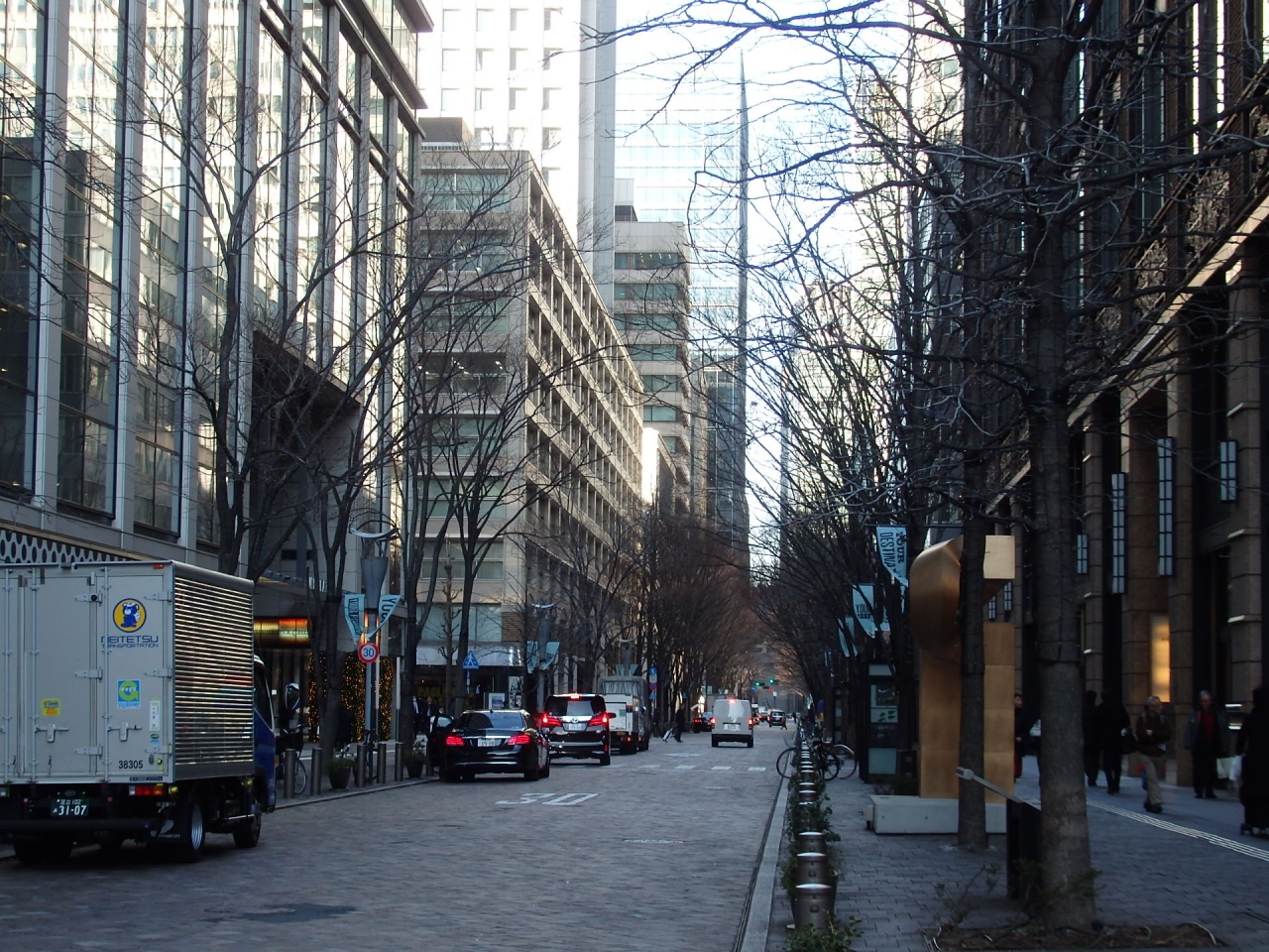 日比谷通りに平行している道路で道の両脇には街路樹が施され、三菱グループ各社のビルが立ち並ぶ三菱村です。オフィスビルの中に、高級ブランドショップやレストラン、カフェ等もあり、他では見られないビル街です。また時期によりイベントが開催されています。貧乏性の私には近寄りがたい雰囲気で、とてもお店の中に入る気分にはなれませんでした