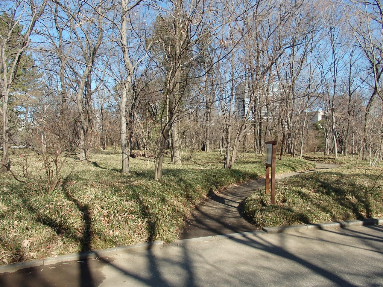 連想させる冬枯れの樹林帯を歩くことができるのは至福の一時です。秋の紅葉時期も素晴