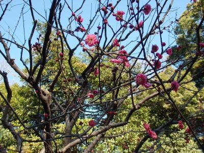 梅林坂と呼ばれています。紅梅系の梅がチラホラと咲いていました。梅林坂に左手に見える
