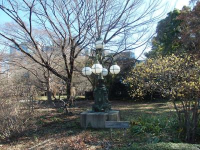 61年に新しく製作したもと取り替えられ、古い電灯がこの二の丸庭園に置かれたもので