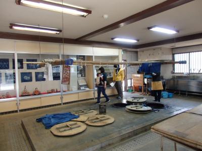 持ち込み染色など、伝統的な藍染めを体験できる施設です。丁度藍染めの実演をしている最