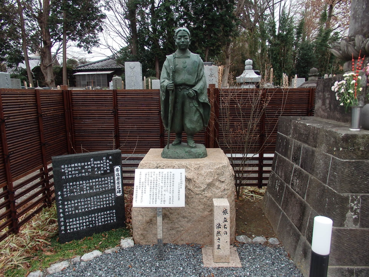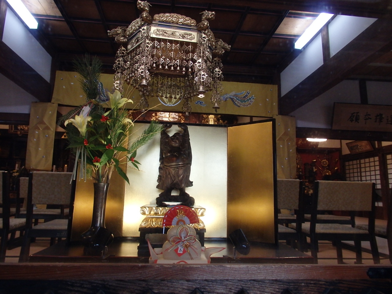 阿弥陀如来像です。川越七福神の第六番布袋孫がおられる寺院です。こじんまりしたお寺で、門を入ると、右正面に本堂があります境内には旅たちの法然像と水琴窟がありました。本堂内陣の手前に布袋孫は安置されています。布袋尊は実在した中国の高僧契此で、家庭円満の神様です。出家されてからの法然上人像は時々見かけられますが、賢そうなお顔をした少年の時の像を見たのは初めてです。人通りの多い蔵造の街並みにある時の鐘から数分ほど