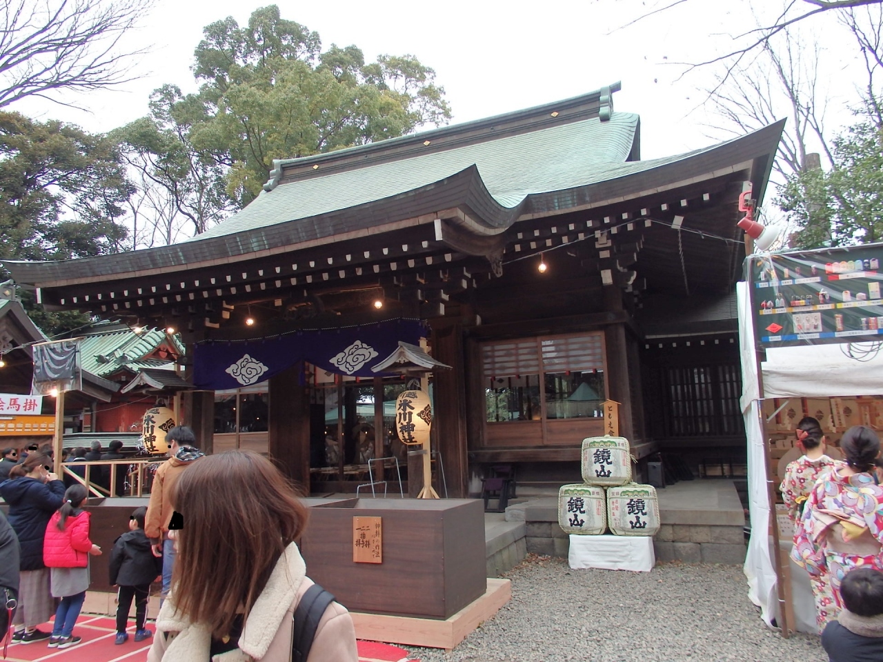 川越八幡宮は1030年、源頼信(源八幡太郎義家の祖父)によって創建される。御祭神は誉田別命(応神天皇)です。境内には拝殿、本殿、境内社(菅原神社、民部稲荷神社)、ご神木、厄割桃(桃玉を厄割石にぶつけて厄を払う)、鳥居、目の神様等があります。川越八幡宮境内にあるご神木 夫婦イチョウで良縁・家庭円満のご利益があります。目の神様(大国主命、少彦名命)は眼病平癒に、民部稲荷は足腰健康にご利益があります。ご利益がいっぱいある神社です。私は家族のために目の神様にお願いをしました