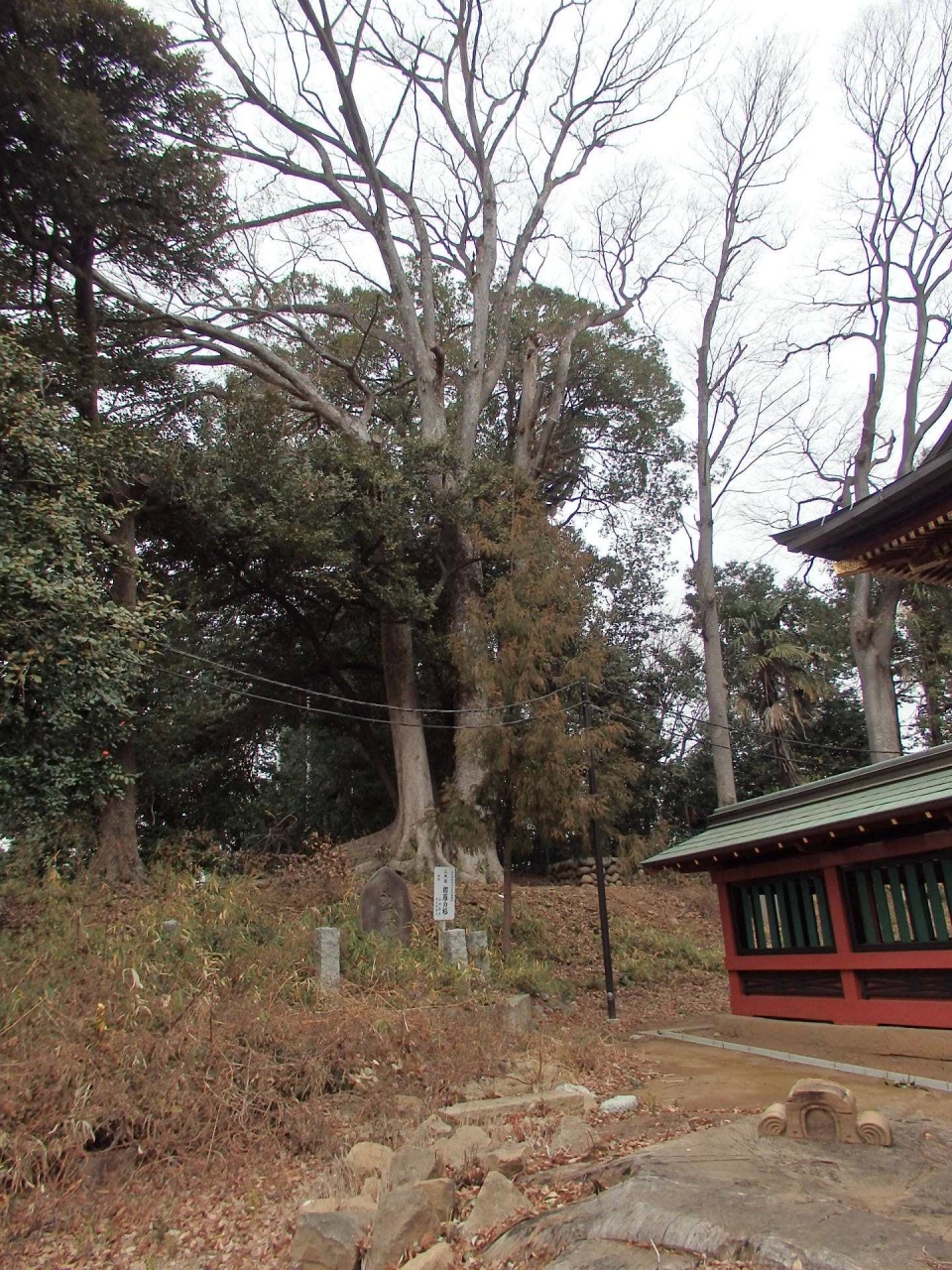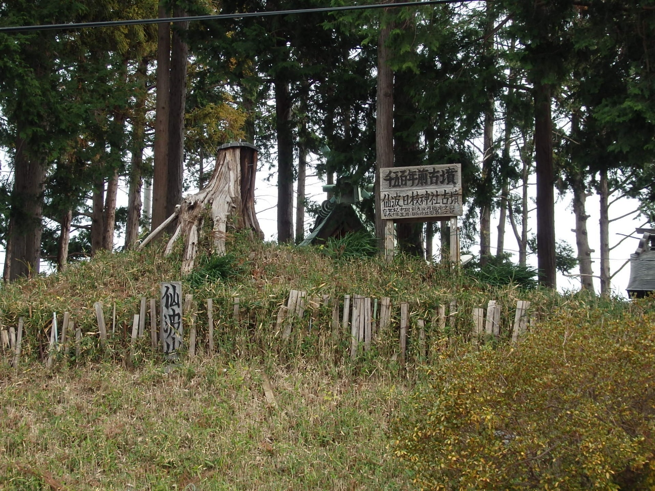 あります。境内の一角に仙波日枝神社古墳の標識が立っており、道路から見ると小高くな