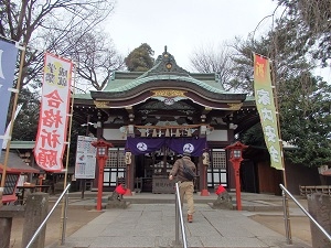 熊野神社は創建1590年、蓮磬寺第二世住職善誉文応僧正が紀州熊野より勧請したことが始まりとされる。御祭神はイザナギノミコト、コトサカノオノミコト、ハヤタマノオノミコトの御三体です。熊野神社は蓮磬寺の一部でしたが、明治時代の神仏分離で川越熊野神社となりました。鳥居をくぐり、右には境内社の加裕稲荷神社、銭洗い弁財天、厳島神社、秋葉神社、大鷲神社があり、正面には拝殿その奥に本殿があります。左手には神楽殿があります。トピックスは鳥居をくぐると参道の両脇に小石を詰めたロードがあります。靴を脱いでこの上を歩き、足裏のつぼを刺激して健康へのご利益を願うものです。今は寒いので裸足では歩けません。ユニークな名所です。開運・縁結びの神として親しまれています。輪投げあり、銭洗いがあり、健康ロードありで結構楽しめる神社です