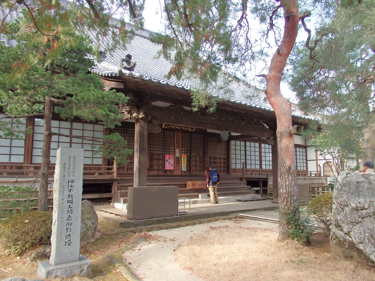 釈迦牟尼如来です。こじんまりしたお寺で、門を入る正面に本堂があります。山門手前に「不許葷酒入山門」と書かれた石柱が建っています。これはにんにく、ねぎ、ニラ等香りの強い野菜と酒は修行僧の心を乱すので持ち込まないようにという注意書きのようなものですますが、境内には二人に会ったのみで、静かにお参りすることができました