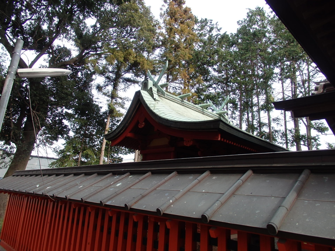 1335年、小塚五左衛門が一族の守護神として創建して、ご祭神は奥津彦神です。鳥居と社殿等のみの小さな神社です。社殿屋根の反りかえりがきれいです。丁度どんと焼きをしていました。役の方にみかんをもらい美味しくいただきました