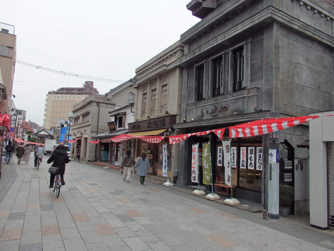 大正浪漫通りは川越市連石町にある商店街で、大正~昭和初期には埼玉県隋一の歴史ある商店街であったそうです。今賑わいを見せている一番街蔵造街並みの南側で一本東の通りです。今もレトロな商店が立ち並び、御影石畳の大正ロマンの香りを漂わすスポットです。しかし一番街蔵造街並みの人数に比べ全く少ないようです。レトロな雰囲気という環境は整っているのですが、地元の人対象の商店街なのか観光客対象の商店街なのかが曖昧で、インパクトに欠けるのではと思われます