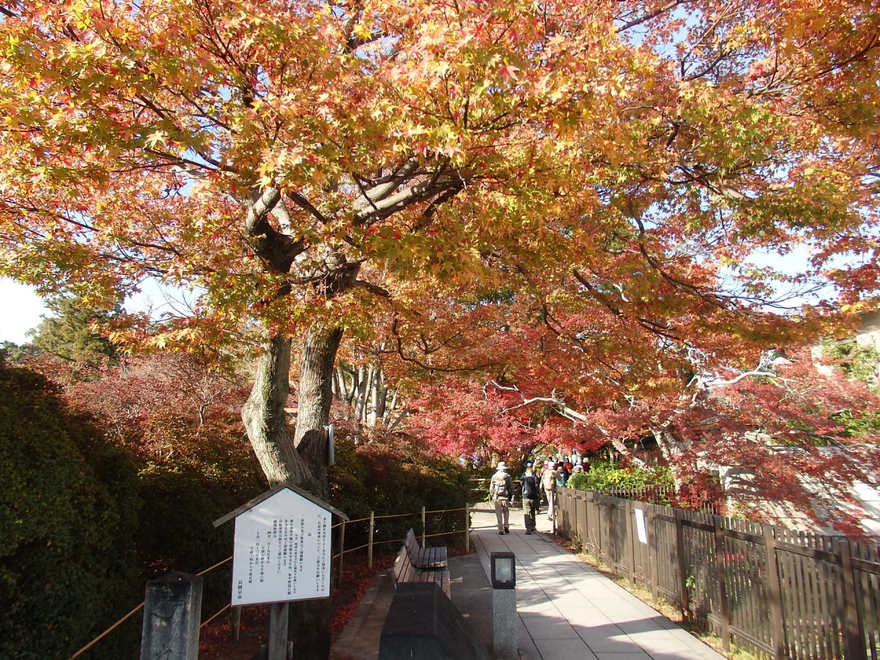 阪急長岡天神駅より徒歩6分ほどで長岡天満宮があります。今丁度紅葉が真っ盛りできれいです。長岡天満宮を出て、しばらく舗装道を歩きやがて西山古道を登ります。歩き始めて2時間35分京青の森に到着します。下りは善峯寺方面に下ります。本日のコース、標高差は330M、コースタイム4時間、急登りもあまりなく歩きやすいコースでした。また所々に紅葉が見られ満足できる山行でした