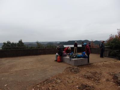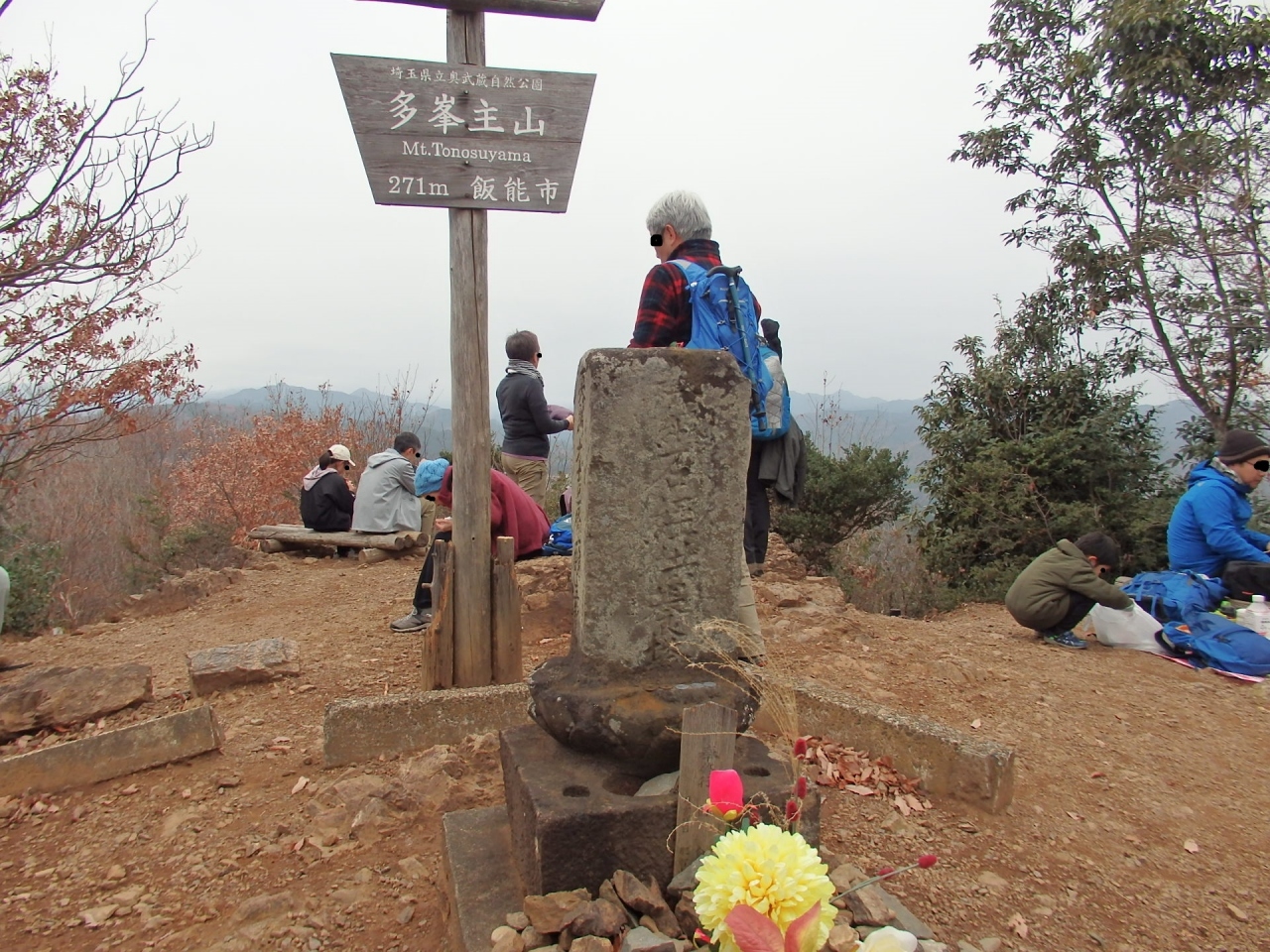 能仁寺を参拝した後、寺脇にある登山口から登り始めました。天覧山中段や十六羅漢仏、天覧山、雨乞池を経て、登り始めて1時間43分、多峯主山(271M)山頂に到着しました。1765年の年号が刻まれた経塚が建っています。眺望は抜群で富士山、奥多摩や丹沢の山々が見えるのですが、残念ながら本日は曇っていてどの山も見えず、飯能市街が見えるのみです。本日のコース、標高差170Mも少なく、大きなアップダウンもない年寄り向きのコースでした。多くの楓の木が見られたので、紅葉の季節に是非来たいと思います
