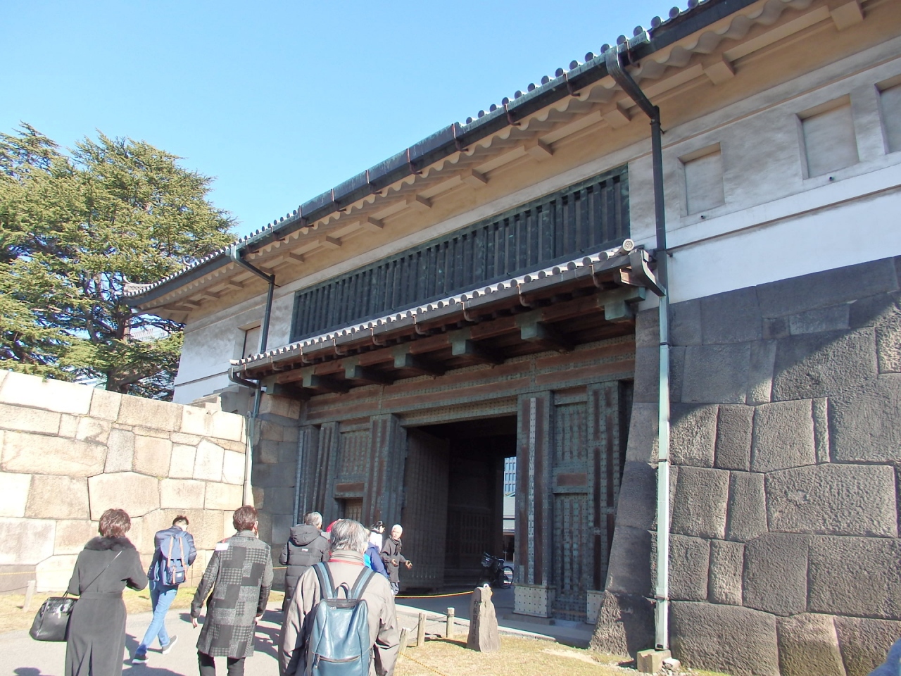 桔梗門(内桜田門)は内桜田門と呼ばれ、この門を入ると三の丸に入ります。大名の登城入口はこの桔梗門か大手門に限られていました。現在皇居一般参観の登城門になっています。外の門の高麗門をくぐると直角方向に、写真で示す立派な内の門の渡櫓門があり、枡形を形成しております。典型的な枡形門で、枡形門を知るには良い教材です。堅固な城門であるのがよくわかります