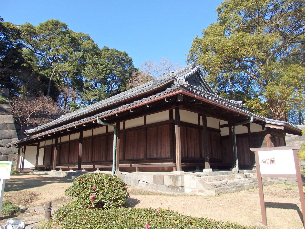 中の門の内側に設けられ、中の門を警備する詰所です。ここは百人番所や同心番所よりさらに上級の武士が務めていました。少し小高い所にあります。ここにある部屋から、下を見張っていたのでしょうか、それともここは警備侍の休憩所でしょうか。大手門近くにある同心番所の建物に比べると随分と立派です